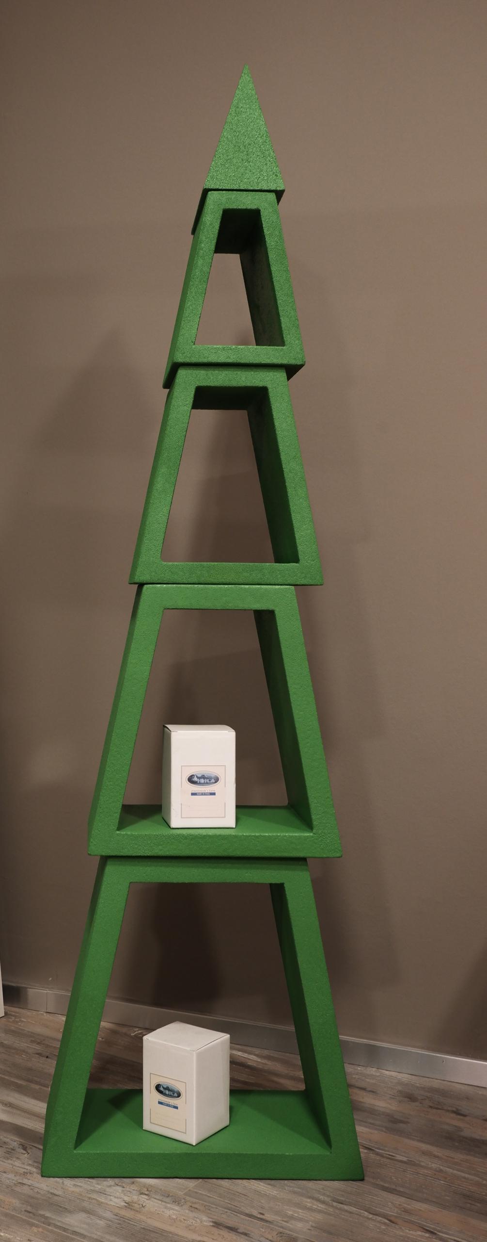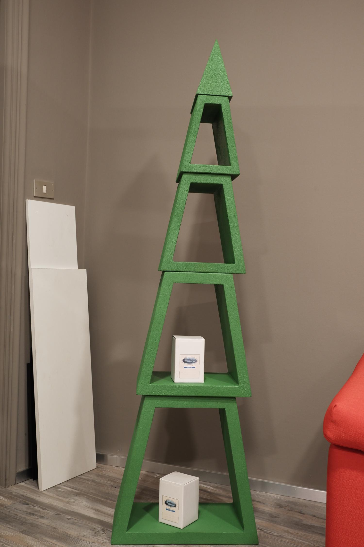 Libreria BE DIFFERENT in Polymass verde. Con possibilità di comporla e rimodularla in funzione delle proprie esigenze fino a farla diventare un simpatico ed originale albero di Natale.